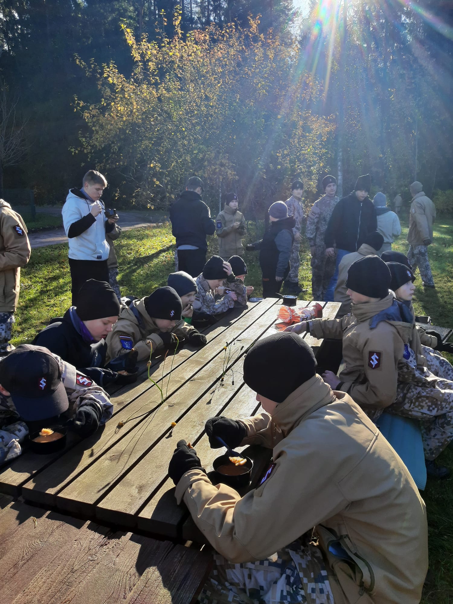 Pārgājiens līdz 10km visiem bija pa spēkam, jo tā laikā mežā meklējām labākos iekurus, augus tējai un iesmiņus desiņu cepšanai vakarā.